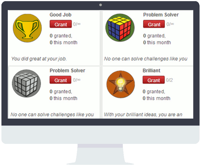 For non-numerical achievements, you can grant them various badges. From a simple "thank you" to an exceptional achievement, a badge is an easy way to express gratitude to employees for their good work.