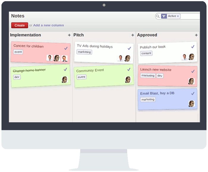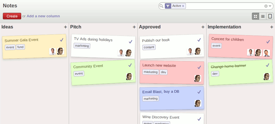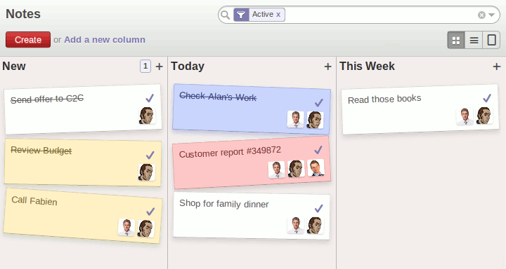 Smart Kanban view of the Notes allows every user to customize their own steps in order to process their to-do lists and notes. You can choose a template or create your own steps/stages of the process.