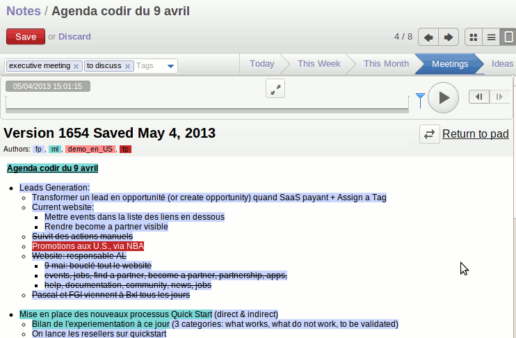 Every pad has a clean and understandable structure - comments of each user are written in a specific color, so it's easy for everyone to see who wrote which comments/ideas.