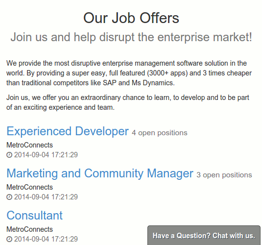 Connect automatically to the most famous job board websites; LinkedIn, Monster, Craigslist, ... Every job position has a new email address automatically assigned in order to route applications directly to the right job position.
